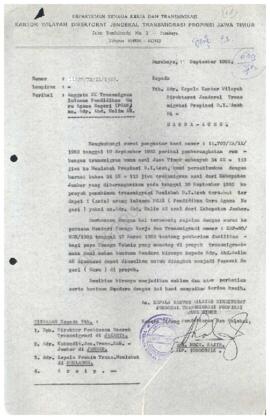 Surat dari Kepala Kanwil Direktorat Jendral Transmigrasi Propinsi Jawa Timur
