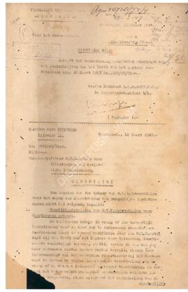 Surat edaran No.15 dari kepala van het kantoor voor Reiswesen kepada alle diensthoofden tentang Inhuur M.T.D auto's voor dienstreizen van burgerlijke lands dienaren
