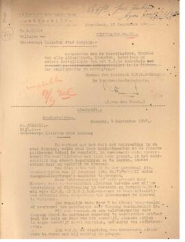 Surat Edaran No. 55 dari Residen H.T.B Soerabaja kepada Koordinator seluruh Kepala bagian Dinas Perusahaan dan Pejabat di H.T.B ke Soerabaja sebagai pemberitahuan dan Pergantian tentang : Penutupan kota Koepang tanggal 15 Spetember 1947