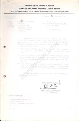 Surat Kakanwil Depnaker Jatim kepada Asisten Wakil Presiden RI Tromol Pos 5000 di Jakarta tentang laporan penyelesaian kasus di Hotel Anugerah Bondowoso