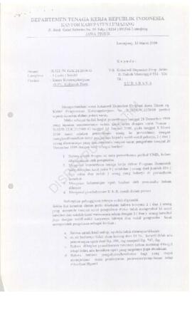 Surat Kepala Kantor Departemen Tenaga Kerja Kabupaten Lumajang : Surat kepada Kepala Kantor Wilayah Departemen Tenaga Kerja Propinsi Jawa Timur tentang laporan kasus ketenagakerjaan di PT.Kalijeruk Baru