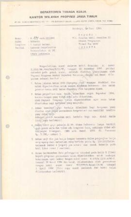 Surat Kepala Kantor Wilayah Departemen Tenaga Kerja Propinsi Jawa Timur : Surat kepada Asisten Wakil Presiden RI Urusan Pengawasan Tromol Pos 5000 di Jakarta tentang laporan penyelesaian permasalahan di PT. Utepe Indonesia