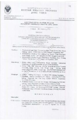 Surat Keputusan Ka.Kanwil Dep.Kes Prop Jatim Nomor : HK.00.06.6.2.1822 tentang pemberian ijin tetap kepada Yayasan Kesehatan Gereja Jawi Wetan Malang Dr.Poedijo Soemanto di Jalan S. Supriadi No.18 Kota Malang