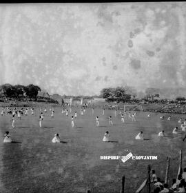 Tarian kolosal yang dibawakan oleh putra dan putri pada Pekan Olah Raga Sekolah Lanjutan di Lapangan Tambaksari Surabaya, 15 – 6 – 1963