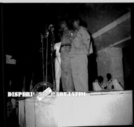 Tiga orang pejabat sedang berpidato pada malam pekan Irian Barat di Surabaya, 27 – 10 – 1957