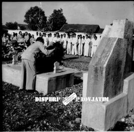 Upacara peletakkan karangan bunga di makam W.R. Supratman pada peringatan Hari Sumpah Pemuda di Surabaya, 28 – 10 – 1959