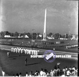 Upacara peringatan 10 Nopember 1958 / Hari Pahlawan di Tugu Pahlawan Surabaya, foto diambil dari kantor gubernur jawa timur, 10 – 11 – 1958