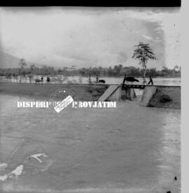 Item VI.59.2717 - Warga yang sednag mengevakuasi ternaknya melewati rel kereta api pada banjir Porong, 12 – 2 – 1959
